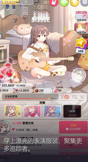 吉他少女游戏中文版是由韩国NEOWIZ GAMES开发运营的一款休闲放置养成类游戏,该游戏以治愈系作为画风,二次元可爱人物作为形象,采用先进的3D动态游戏引擎制作,使其游戏中拥有着媲美电脑游戏画质,让人看上去非常的真实,搭配上独具一格游戏背景音乐,为玩家们带来听觉与视觉双重重盛宴。
