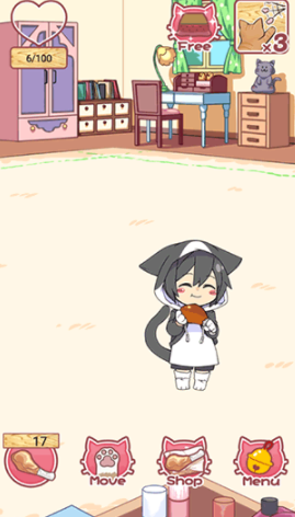 猫耳少年育成中文版是一款经典的养成经营类小游戏,故事一开始是在窗户前发现一个小小的孩子,走进一看才知道是一个长着猫耳朵的少年,他穿最普通的黑白猫耳兜帽衫,在玩家的精心照顾下,慢慢的衣服也能升级,目前小编是将他的衣服升级到了三毛猫耳兜帽衫,想要再升级的话,就要出门打猎为他收集鸡肉,时不时拿逗猫棒陪他玩,操作非常简单,轻轻松松三步就能育成。