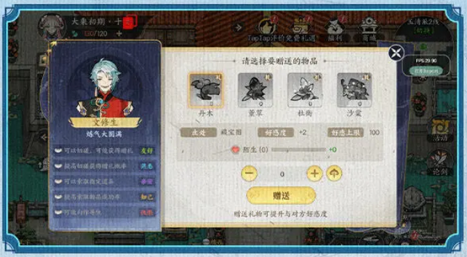 当然我们也可以投其所好,送一些通过探索地图、寻宝、刷副本、商城购买得来的好感材料送给他们提升好感度,达到一定阶段后也有更大的机会索取到自己所需的修炼资源