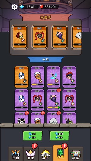 6、结束教程后,玩家可以在主界面发现各种养成系统,点击卡牌通过抽卡可以获得卡牌对角色属性进行提升。
