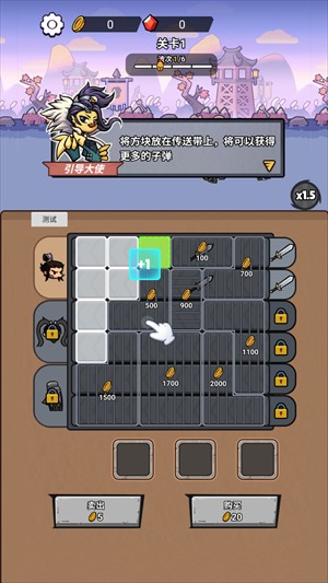 2、点击右下角购买可以获得格子,将格子拖到上分角色的格子区域后可以将子弹数量+1.
