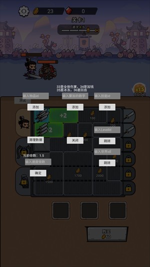 5、点击测试可以打开GM菜单,自由添加各种道具内容,或是提升游戏速度倍率。