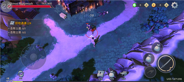 3、左边控制方向,右边各种功能键,控制角色像虚拟方向箭头前行;