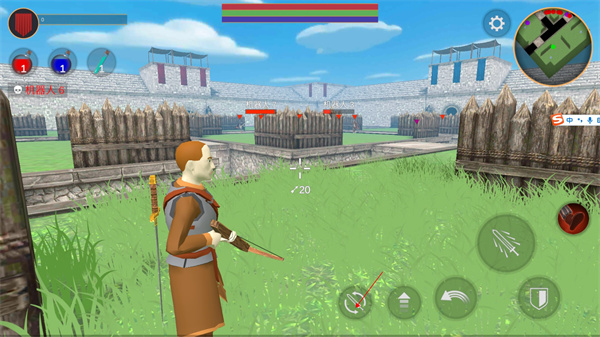 4、当敌人离我们很远时,我们就可以点击下方箭头进行切换弩弓来攻击;