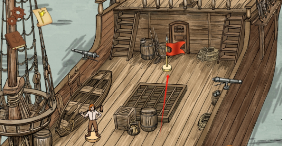 完成第一章的内容后,船上会出现一个旗子,点击船上的旗子;