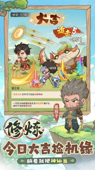 1、修炼,今日大吉捡机缘。