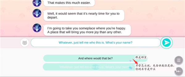 1、进入剧情对方发出Hello你好,我们回复你是谁?