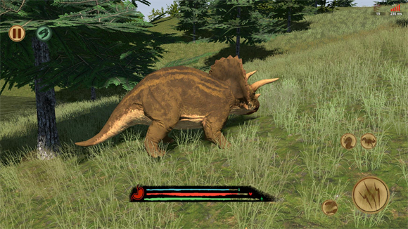 4、正式开始后屏幕左边控制恐龙的移动,右边是攻击、奔跑、休息、喊叫的按钮。