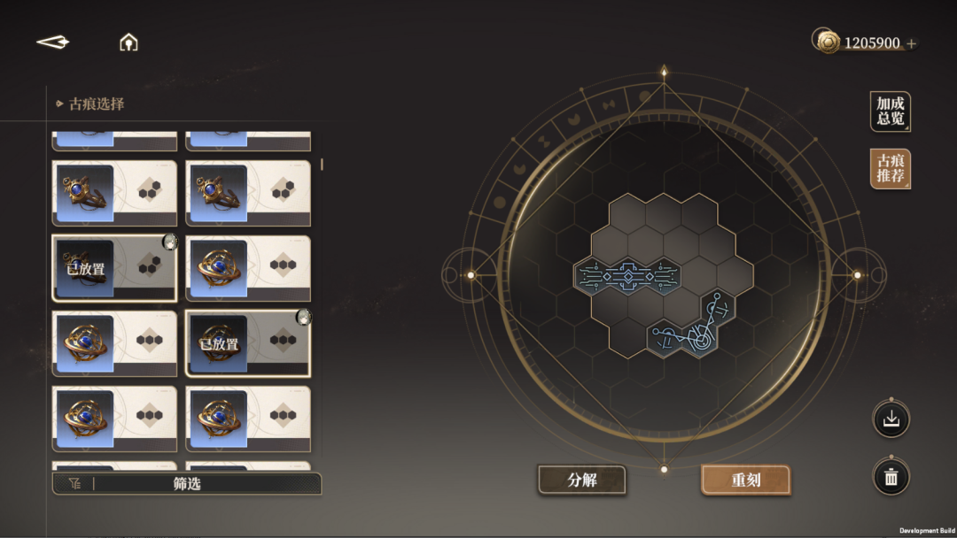 4、古痕在生成时会带有1条随机属性,玩家可以选择相同名字的古痕进行合并(最多2次),合并后的古痕可以通过反向拆解进行调整。