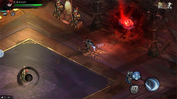 3、进入地图后左边控制角色的移动,右边是角色的技能、攻击和闪避按键。