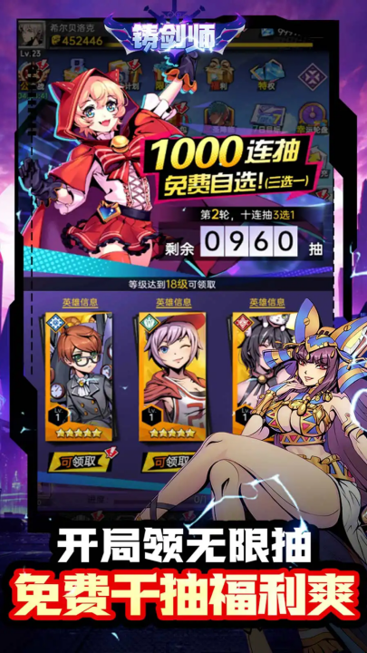 2、新版本福利,登录免费送千抽。