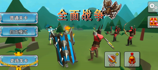 全面战争战地模拟器最新版是一款玩法十分简单有趣的战争模拟游戏,画面简约操作简单,兵种地图丰富,玩法多样有趣,玩家能够真实体验到战争游戏的刺激感。在这里你将拥有一个强大的兵种部队,其中有超多的卡通角色以及各种各样的武器在等你解锁,游戏中需要率领自己的军团排兵布阵以此跟敌人战斗,每过一关即可获得钻石,利用钻石可用来提升兵种等级,以此获取更高的战斗力。