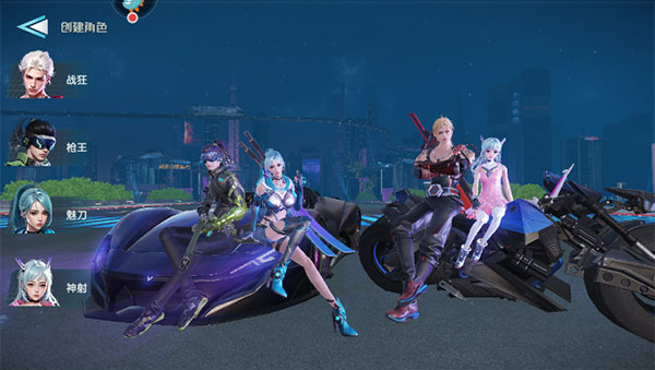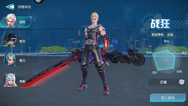 1、开始游戏后,选择创建角色,有战狂、枪王、魅刀、神射四个职业可以选择。