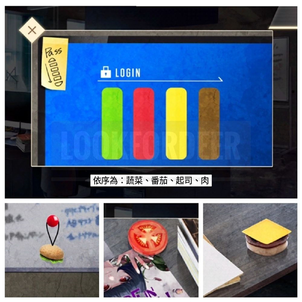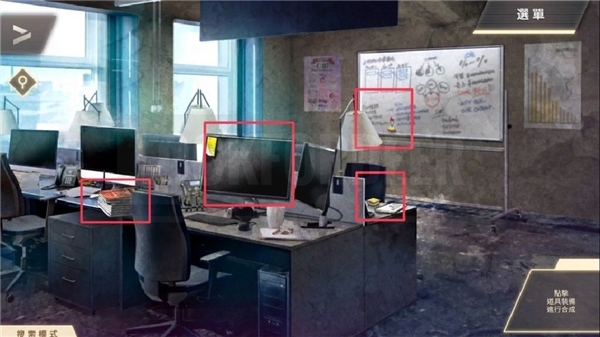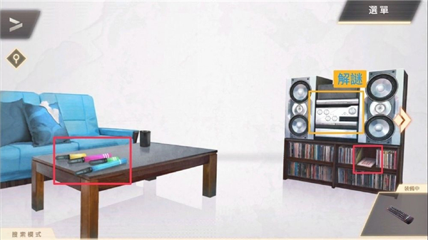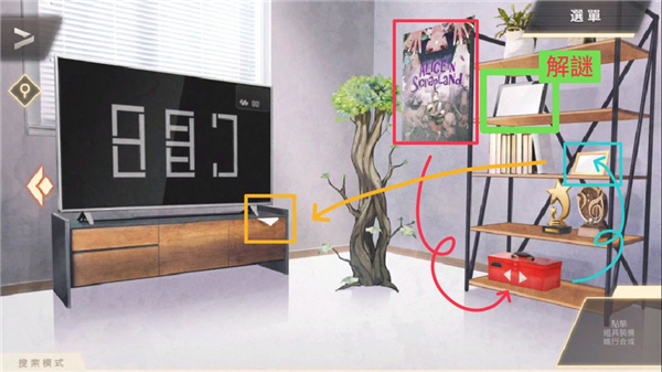 ⑧ 移动到「左房间」光碟机解谜,观察柜子股市表、桌上萤光棒长度及条纹数量