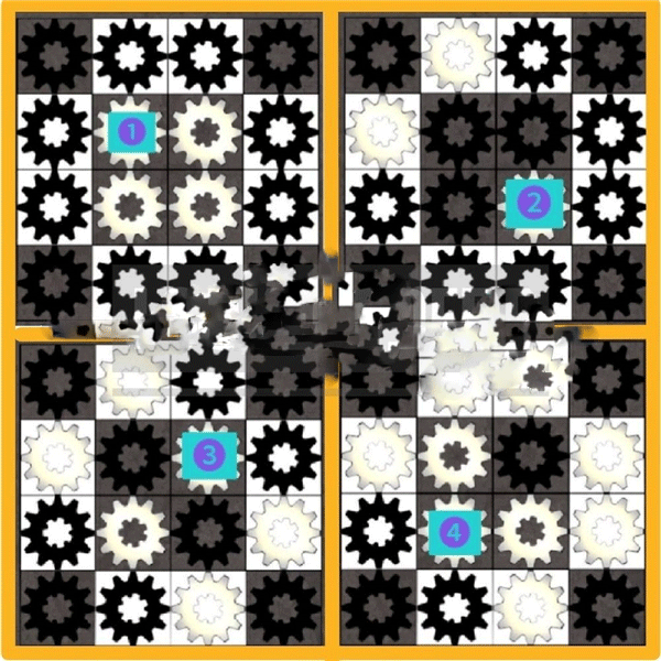 黑底暗齿轮、白底亮齿轮,点击齿轮时相邻位置(上下左右)会一起变色