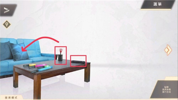 ③ 移动到「左房间」拿桌上的「剪刀、遥控器」