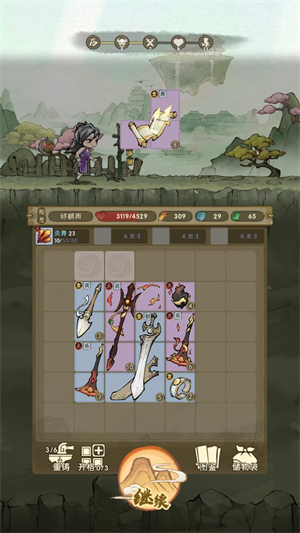 3、点击继续可以继续冒险来获得更多法宝,每完成一次战斗都可以获得新的宝物。