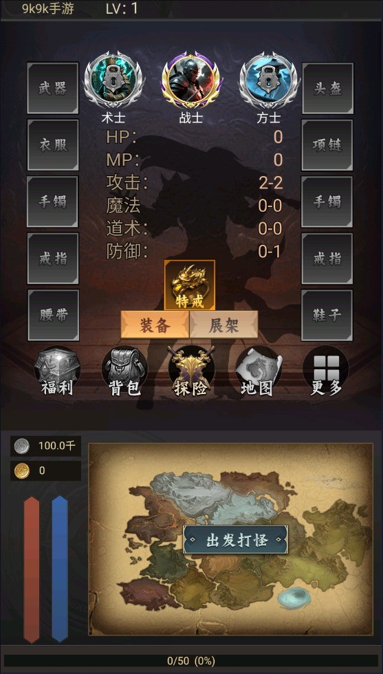 2、选择成为一名战士开始打怪冒险,点击开始战斗。