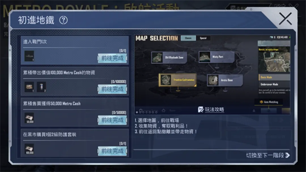 大家可在任务右侧查看任务攻略,首次点击活动内任何攻略,还可获得Metro Cash*50000哦~