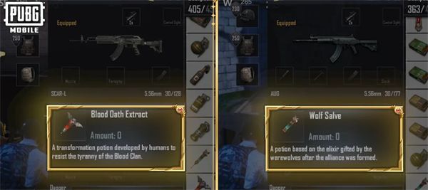 大家在绯红古堡和狼族部落搜索物资时,随处都可捡到血誓之液和狼灵药剂,这些可是变身的关键道具哦~