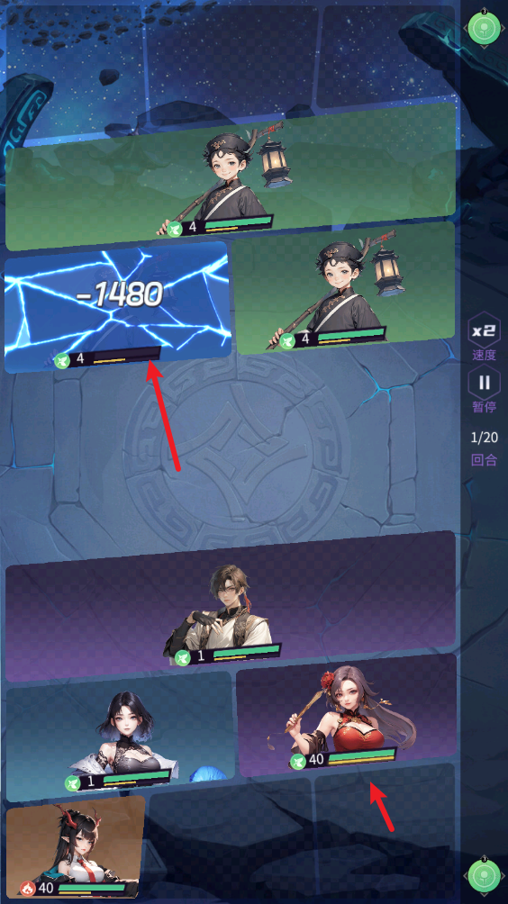 1、游戏主要的战斗玩法为回合制卡牌对战,战斗前我们需要设置好自己的阵容。