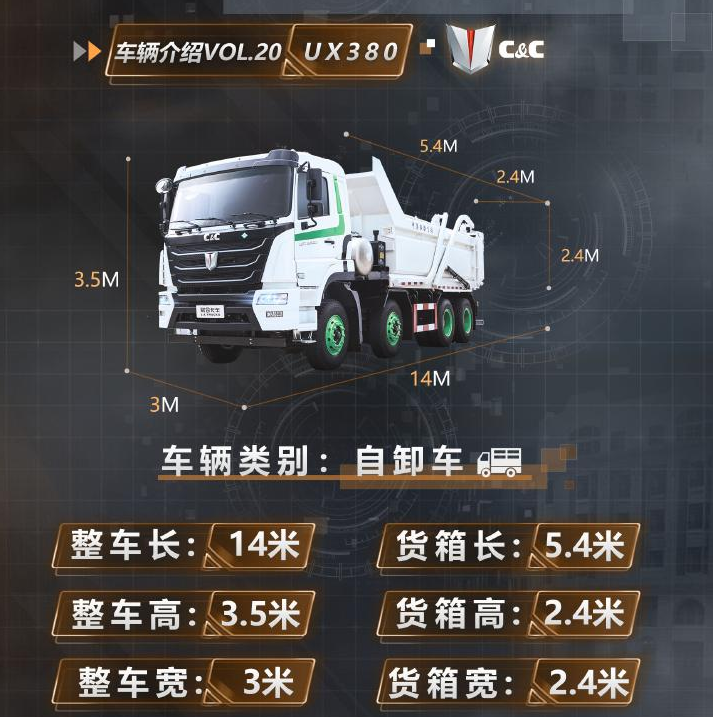 本次正式与各位见面的中集联合重卡UX380因为抢眼的外观,早就被各位卡友询问多次。归属重型自卸车的UX380通过操纵系统控制活塞杆运动,由后向倾翻。由于装载车厢能自动倾翻一定角度卸料,大大节省卸料时间,缩短运输周期,提高生产效率,降低运输成本,是常用的运输专用车。而配合联卡UX380的这一特性,游戏内则放大其节约成本这一特点设置专门特性。