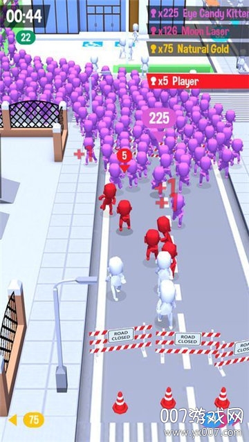 1、引导小队吸收更多市民壮大队伍规模,穿越城市街道避开障碍物前行。
