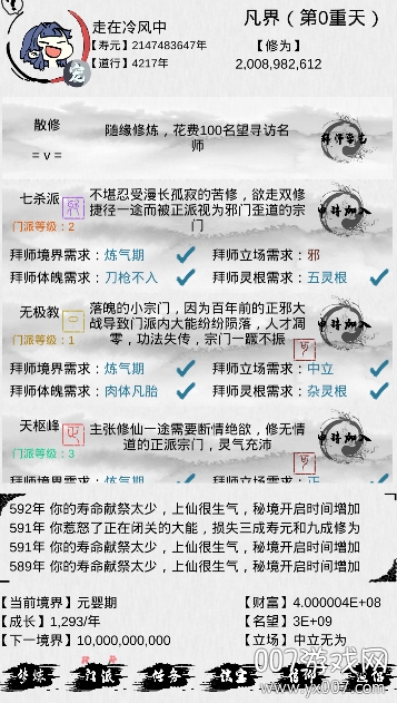 4、游戏中没有角色之分,不同的修为能够加入不同的仙门,学习强大的仙法。