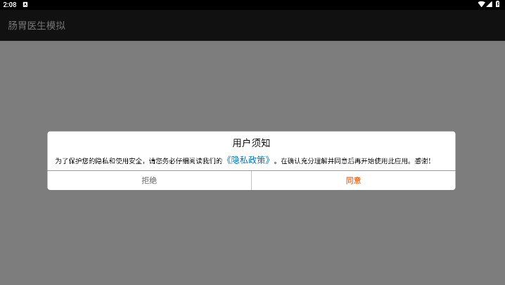 1、下载游戏查看用户须知点击同意,下一步就能能进入小游戏中了。