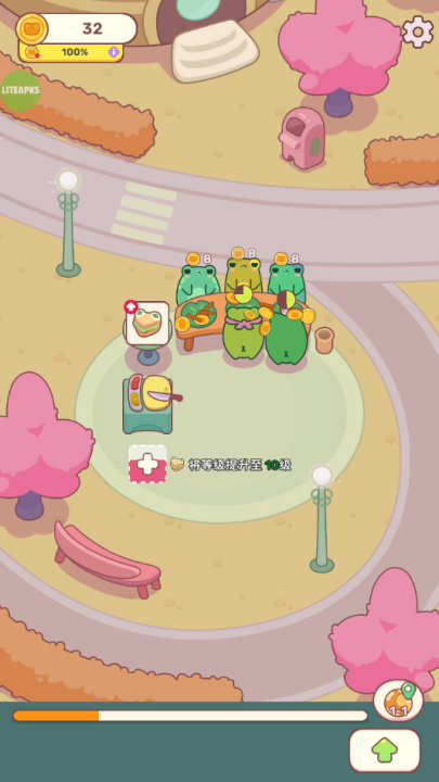 3、你可以扩大店面,招募可爱的青蛙店员,帮助自己管理和感受竞争的乐趣。
