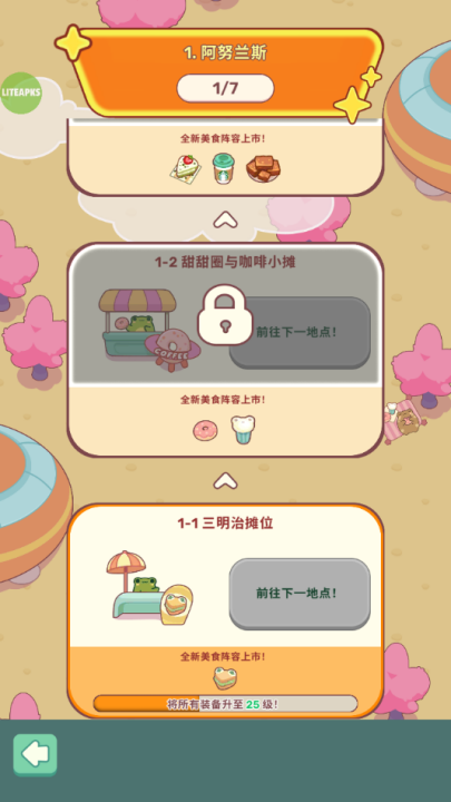 1、建立你的青蛙厨房帝国:踏入不同的地点,每个地方都有独特的主题和令人唾涎的美食。从热闹的咖啡馆到宁静的餐厅,美食选择无穷无尽。制作美味佳肴,让你的青蛙顾客高兴得跳起来!