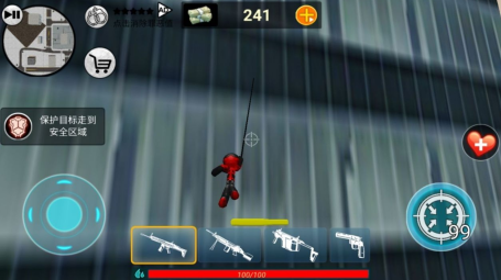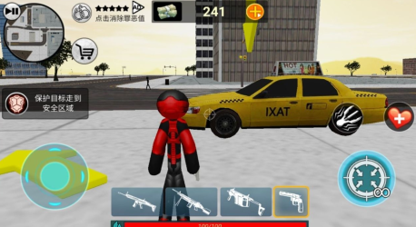 1、右侧绳索按钮可发射绳索,实现高楼间摆荡、攀爬或快速移动,类似蜘蛛侠的机动方式;