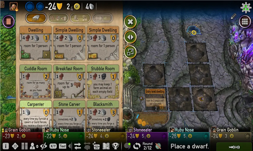 乌韦·罗森伯格(Uwe Rosenberg)的洞穴让你成为矮人部落的首领,住在一个小洞穴里。在整个游戏过程中,您在洞穴前面耕种森林,并深入山中。通过在洞穴中布置房间,您可以腾出空间来发展您的部落,并利用您的资源创造新的商品。在山的深处,你会发现喷泉以及矿石和宝石矿。你可以决定开采多少矿石和宝石,让你有机会锻造武器并继续冒险。