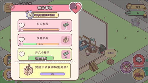 10、家门口的礼物盒每次领取后都会重置倒计时时间,点击它可以获得不同的惊喜物品,记得经常回来看看噢,以上就是袋中爱的游戏攻略了。