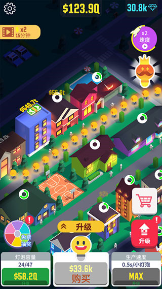 1、光明城市采用独特的建筑风格,玩家需要建设出非常多不同的精美灯泡房子,更好的充实自己的城市风光
