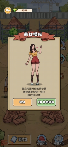 购房和投资:在我在工地等你免广告中,玩家可以利用挣到的金钱购买自己的房屋,提高生活品质以及每月的固定收入。此外,游戏还提供了投资机会,玩家可以选择投资不同的行业,获得更多的 收入,实现财富增值。