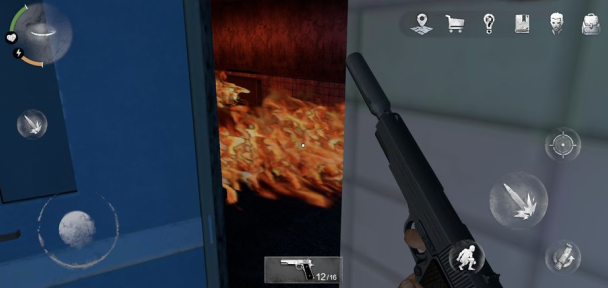 2,手枪不瞄准,也可以直接通过白点直接射击,但是射击后需要按瞄准切换会普通站姿(ps:瞄准中滑屏动作幅度小,另外走的慢,避免有些小伙伴一着急,跑又跑不动,转又转不开,还是特别提醒,注意姿势)