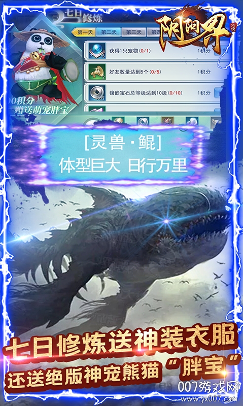 4、参与七日修炼活动领取绝版神宠熊猫“胖宝”,免费活动任君领取!