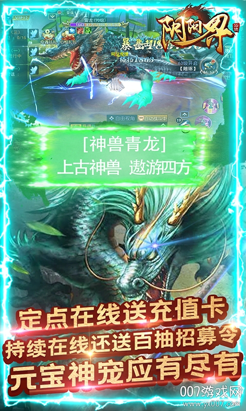 阴阳界送1000充值版,是一款rpg仙侠类的手机游戏,玩家上线就送千元充值卡v10,海量绑元银币领不停,持续登入还送翅膀、神技、镇海圣兽、神装衣服、绝版神宠熊猫、百连抽招募令等等,元宝多到花不完,尽享极致游戏体验。