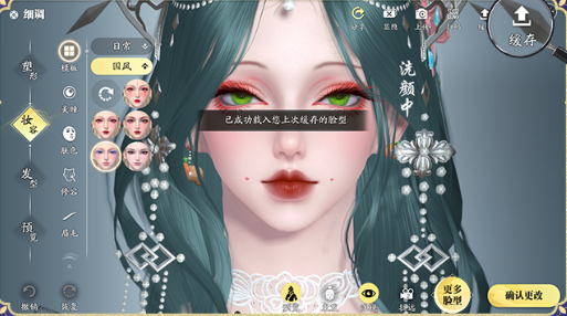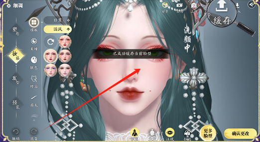 点击右上角缓存按钮界面提示【已成功缓存当前脸型】