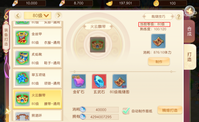 打造技巧当前是什么等级,就打造当前等级或以下级的装备。