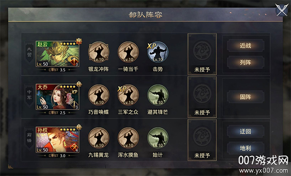 大营:赵云,一骑当千+XP击势;近战+列阵