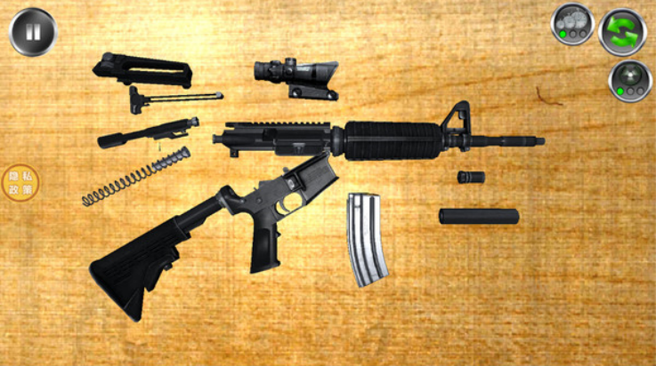 1、在本站下载并成功安装该游戏,启动游戏后,您将从枪械库中选择一个关卡,屏幕上会展示出一把待拆卸的完整枪械及其内部零件结构图。