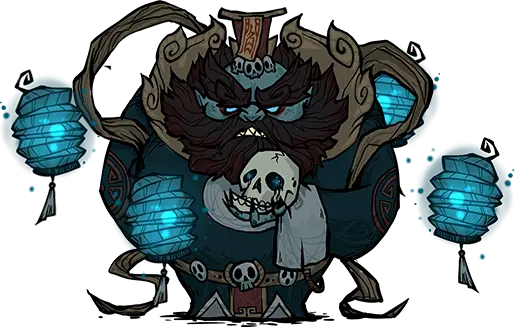 生成:开局第6天以后,当玩家生命低于10%理智低于40%出现。在黄昏时,阎王会不断派厉鬼勾魂。消灭10个怨魂后,若玩家血量仍低于10%,阎王现身。
