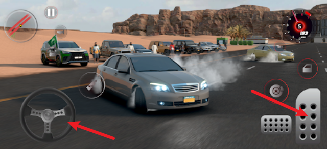 1、游戏中,通过左侧的方向盘控制转向,右侧长踏板加速,短踏板则是后退。