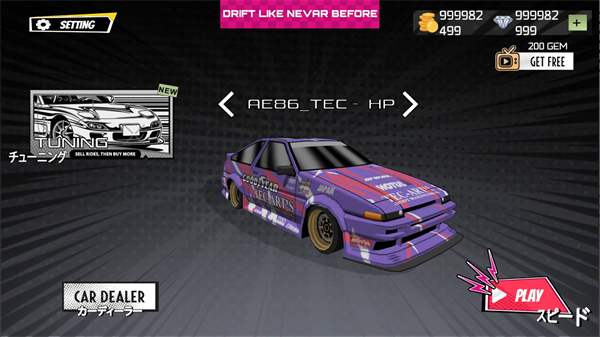 卡通漂移是一款赛车竞速游戏,准备好在受 90 年代和 2000 年代 JDM 汽车文化启发的动漫世界中漂移和比赛!在卡通漂移中,您将在日本风格的漂移赛道上驰骋,有大量的汽车可供定制和调整。升级引擎,更换轮辋,添加车身套件,并为您的汽车涂上大胆的颜色。使用涂装系统设计自己的 JDM 风格杰作。每辆车都有真实的引擎声音,让体验感觉真实。如果你喜欢漂移、改装车和 JDM 场景,那么这款游戏非常适合你!