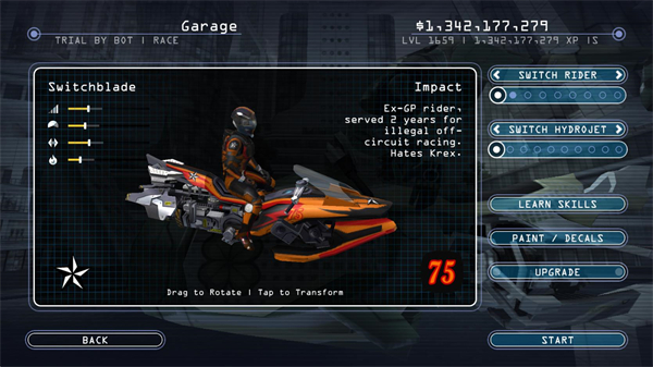 3、选好地图后可以选择自己的快艇以及对快艇进行升级,全部选好后点击start开始比赛。