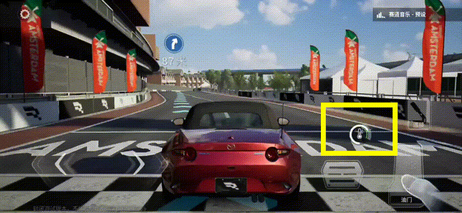 这里有个起步小技巧,在倒计时开始时,立刻按下油门键控制指针,使其来到白色区域附近,这样就不会手忙脚乱,轻松完成「完美起步」。