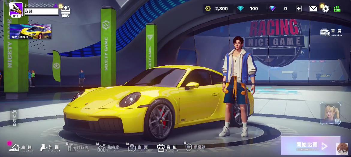1、下载安装游戏后,选择你的初始赛车与昵称。