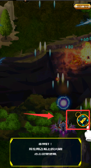 3、非常好,现在用飞机上技能,点击红色框框里的火箭就能玩了。